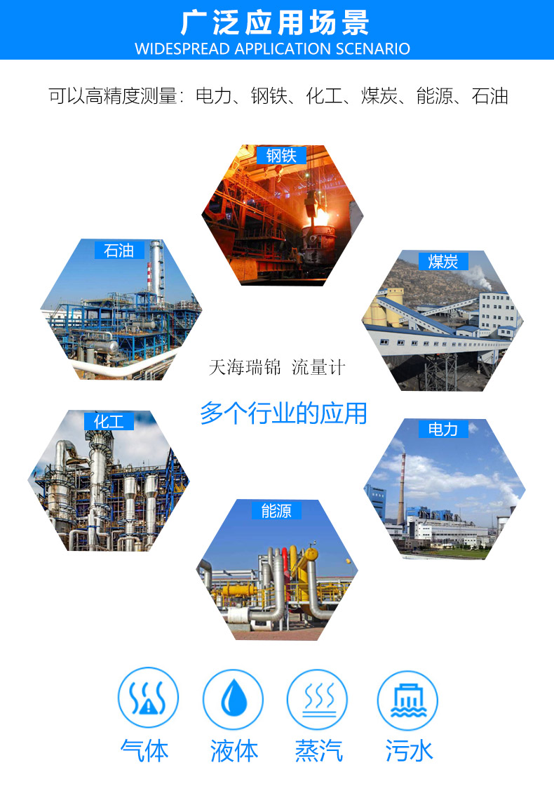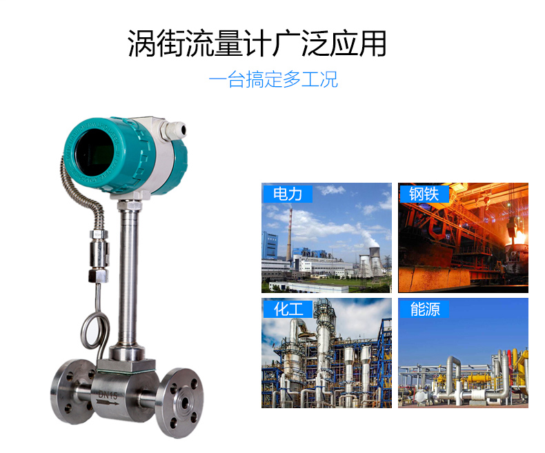 LUGB/E型渦街流量?jī)x表廣泛適用于石油、化工、冶金、熱力、紡織、造紙等行業(yè)對(duì)過熱蒸汽、飽和蒸汽、壓縮空氣和一般氣體(氧氣、氮?dú)鈿錃?、天然氣、煤氣? 、水和液體(如:水、汽油、酒精、苯類等)的計(jì)量和控制。